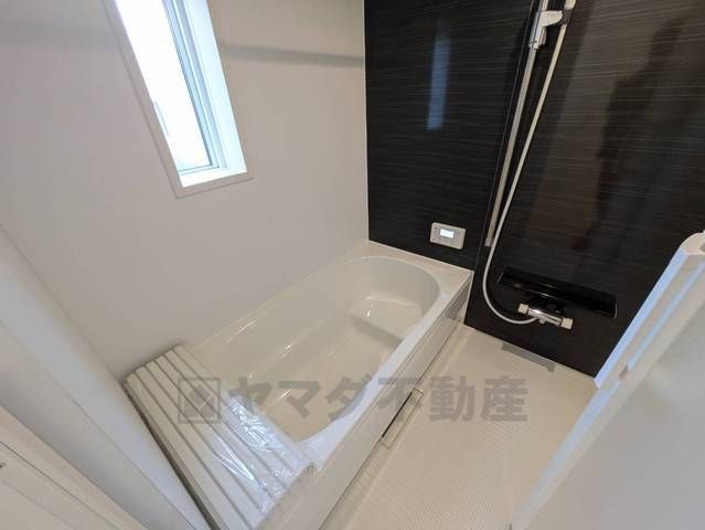 1日の疲れを癒すくつろぎのバスルーム。足を伸ばしてもゆったりと入れるサイズです。お子様と一緒にお風呂に入っても狭くないですね^^