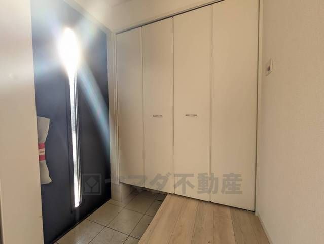 採光も考えられた明るい玄関です。たっぷり収納できるシューズボックス付きなので、家族全員の靴がきれいに整頓できます。