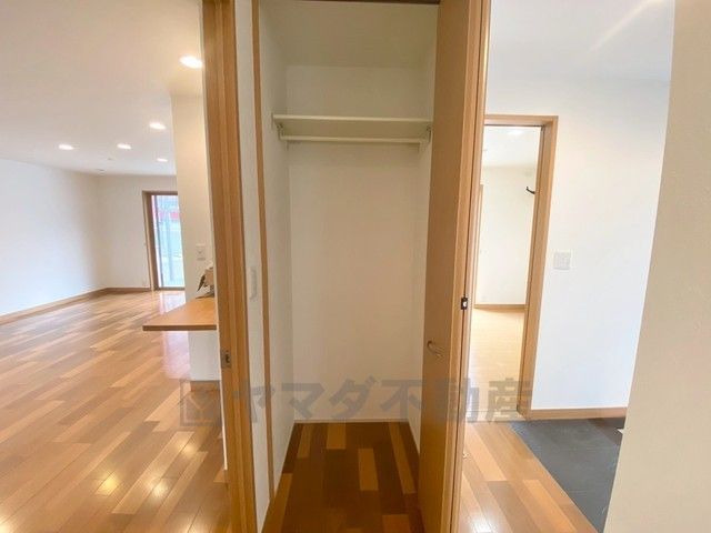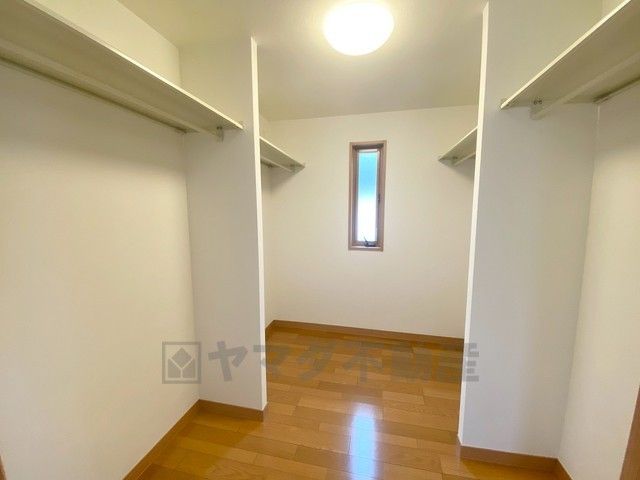 2階洋室にハンガーパイプ付きのウォークインクローゼットが設けられています。たっぷり収納できるので衣替えの心配もいりませんね^^
