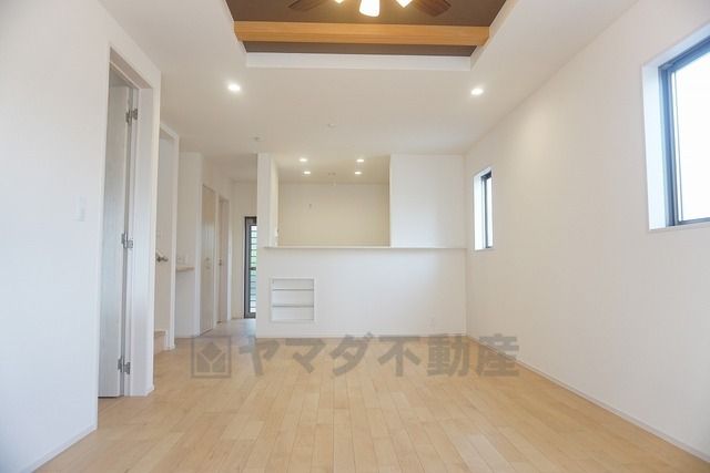 ▲21帖LDK・吹抜けお洒落新築物件。4台駐車^^折上天井・LDKは明るく開放感のある空間。畳のマルチスキップスペース.対面キッチン、食器洗乾燥機で家事も楽々^^