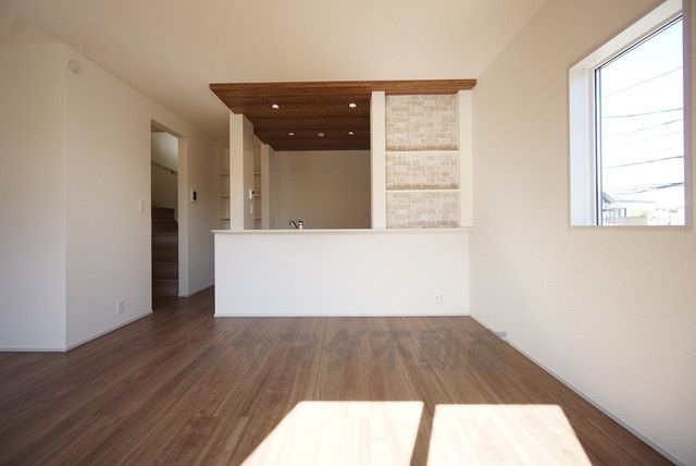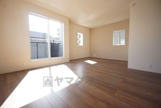 大きな掃き出し窓のあるリビングは、陽光あふれる明るい空間です。ゆったりと寛げる憩いの場となりそうです。