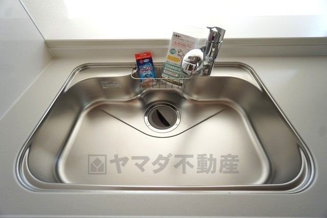 大きなお鍋も楽々洗える幅の広いシンクです^^ステンレスシンクなので簡単にお掃除できますよ。洗剤やスポンジもすっきりできる収納付き。