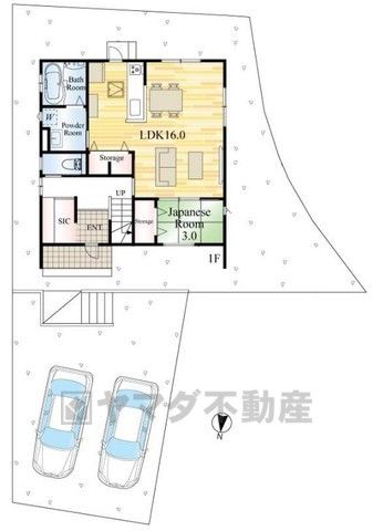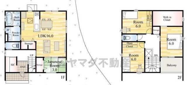 LDK16畳(1F)、和3畳(1F)、洋6畳(2F) |