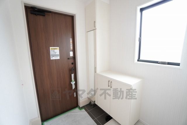 採光も考えられた明るい玄関です。シューズボックス付きなので、家族全員の靴がきれいに整頓できます。