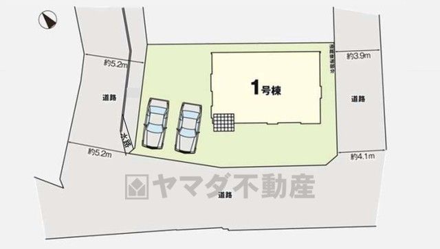 公道 南東 幅員3.9m 私道 北西 幅員5.2m 公道 南西 幅員0m |
