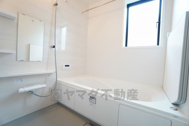 1日の疲れを癒すくつろぎのバスルーム。足を伸ばしてもゆったりと入れるサイズです。お子様と一緒にお風呂に入っても狭くないですね^^