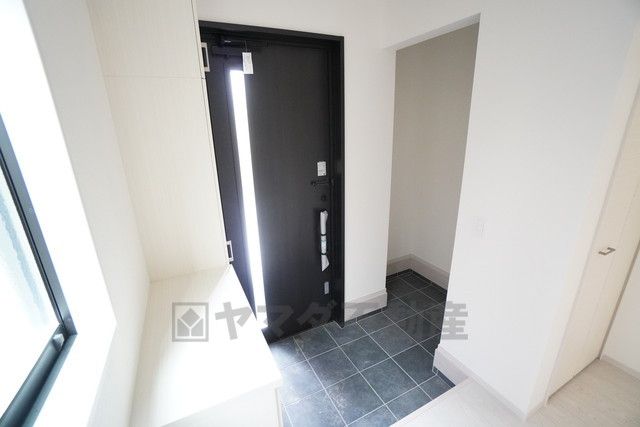採光も考えられた明るい玄関です。たっぷり収納できるシューズボックス付きなので、家族全員の靴がきれいに整頓できます。