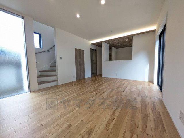 大きな掃き出し窓のあるリビングは、陽光あふれる明るい空間です。ゆったりと寛げる憩いの場となりそうです。
