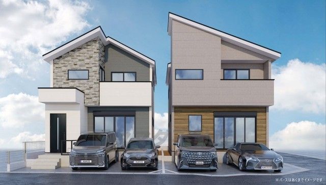 左が1号棟。完成予想図。現況と異なる場合は現況優先となります。