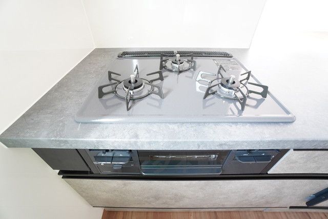 3種類の料理が同時に調理できる、3口ガスコンロ。忙しい夕食の支度時間が短縮できて効率よくお料理が楽しめます。