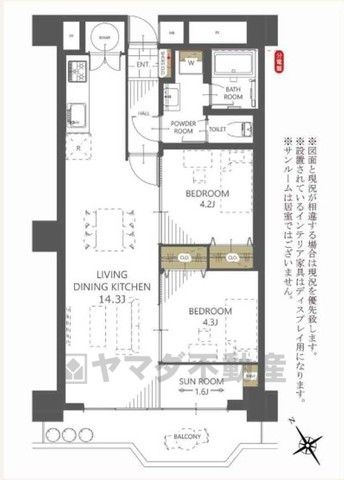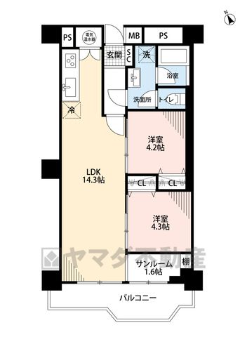 LDK14.3畳、洋4.2畳、洋4.3畳、その他1.6畳 |
