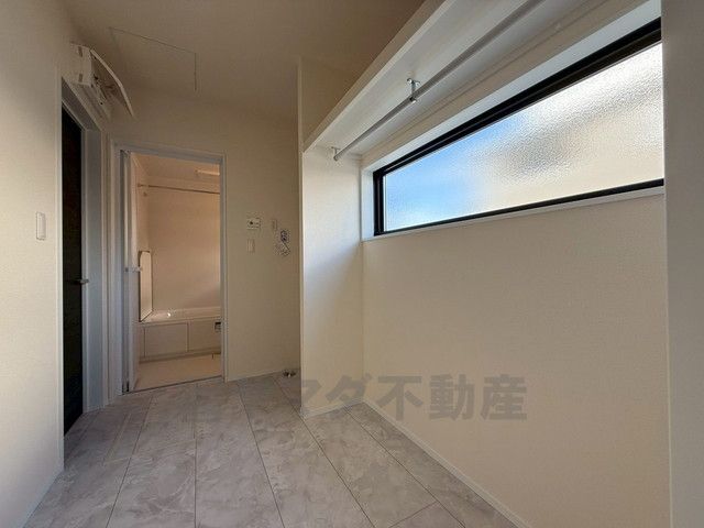 ランドリースペースにはハンガーパイプ付きの収納スペース完備^^
