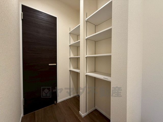 キッチン後方に広々としたパントリー付き^^洗面室にも近く、食料品だけでなく日用品などの収納にも^^