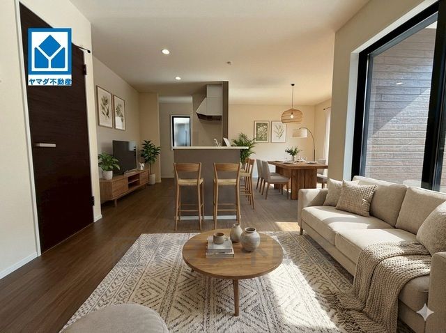 家族が集まる開放的なリビング。思い思いの時間を過ごしたり食事をしたり、素敵な団らんの場になりますね。家具はCGによるイメージです