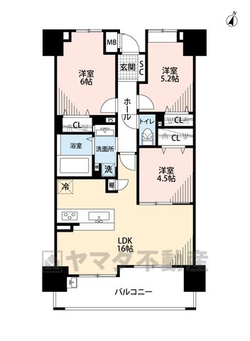 LDK16畳、洋6畳、洋5.2畳、洋4.5畳 |