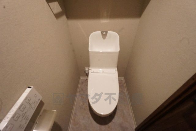 ウォシュレット、暖房便座、節電・節水機能など、使い勝手のよい高機能トイレです。 シックなカラーのアクセントクロスとお洒落な床で落ち着く空間^^