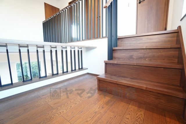 階段途中には踊り場&カウンターが設けられています^^ お子さまの勉強スペースや作業の場、家事の合間の一息休憩にも^^