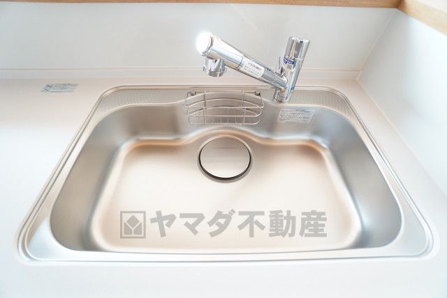 大きなお鍋も楽々洗える幅の広いシンクです^^ステンレスシンクなので簡単にお掃除できますよ。洗剤やスポンジもすっきりできる収納付き。