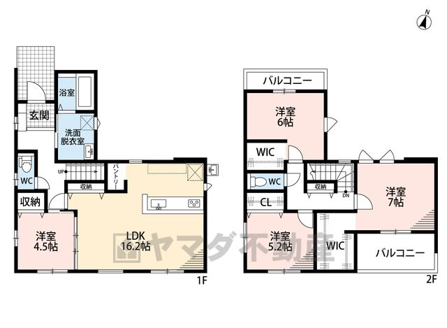 LDK16.2畳(1F)、洋4.5畳(1F)、洋6畳(2F)、洋5.2畳(2F)、洋7畳(2F) |
