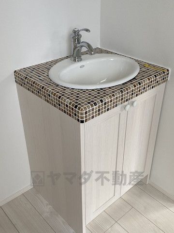 三面鏡裏収納付き洗面化粧台です^^ 歯磨きセットやスキンケア用品などの収納に便利ですね。生活感も隠すことができ、来客時にも安心です。