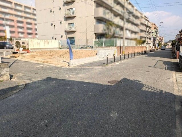 西鉄バス「鶴田団地」停まで徒歩約2分^^角地^^前面道路、南東:7.7m 南西:4.9m 北西:3.9m公道。