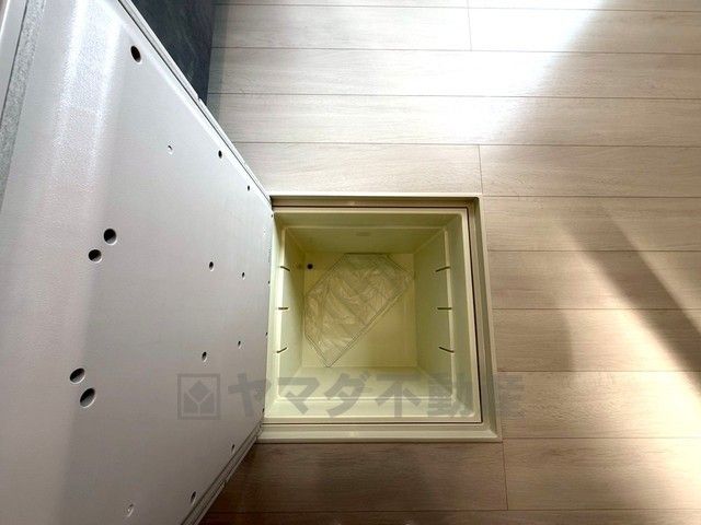 キッチンに床下収納があります。長期保存ができるもの、調理器具、防災グッズを入れておくのもいいですね。