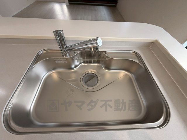 大きなお鍋も楽々洗える幅の広いシンクです^^ステンレスシンクなので簡単にお掃除できますよ。洗剤やスポンジもすっきりできる収納付き。