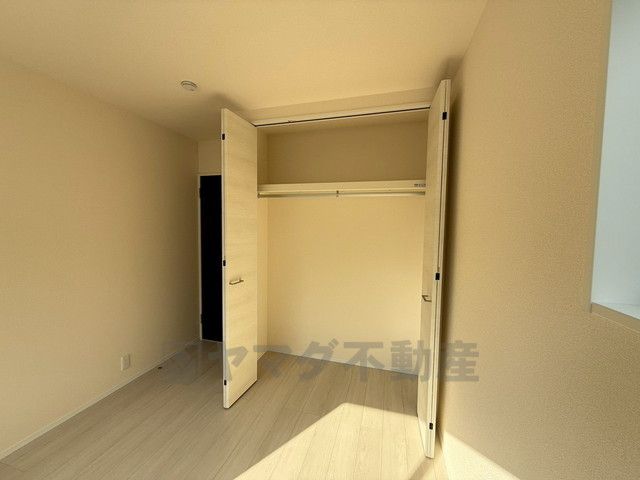 洋室にはハンガーパイプ付きのクローゼットが設けられています。たっぷり収納できるので衣替えの心配もいりませんね^^