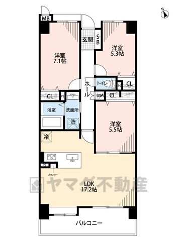 LDK17.2畳、洋7.1畳、洋5.5畳、洋5.3畳 |
