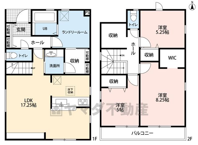 LDK17.2畳(1F)、洋5畳(2F)、洋5.2畳(2F)、洋8.2畳(2F) |