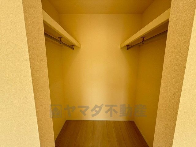 洋室にはハンガーパイプ付きのウォークインクローゼットが設けられています。たっぷり収納できるので衣替えの心配もいりませんね^^
