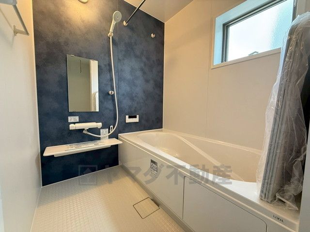 1日の疲れを癒すくつろぎのバスルーム。足を伸ばしてもゆったりと入れるサイズです。お子様と一緒にお風呂に入っても狭くないですね^^