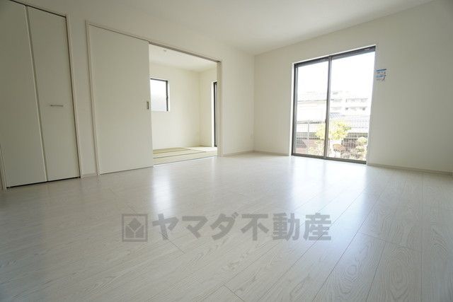 大きな掃き出し窓のあるリビングは、陽光あふれる明るい空間です。ゆったりと寛げる憩いの場となりそうです。