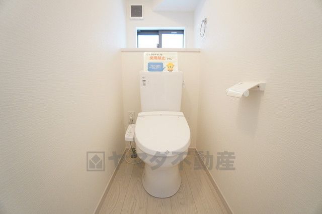 1階2階の2ヶ所にトイレがありますので、忙しい朝にも家族に気を使わず、ゆとりが生まれますね^^ 小窓付きで換気する時に便利です^^