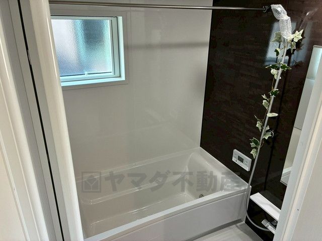 1日の疲れを癒すくつろぎのバスルーム。足を伸ばしてもゆったりと入れるサイズです。お子様と一緒にお風呂に入っても狭くないですね^^