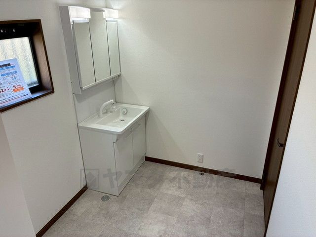 三面鏡裏収納付き洗面化粧台です^^ 歯磨きセットやスキンケア用品などの収納に便利ですね。 生活感も隠すことができ、来客時にも安心です。