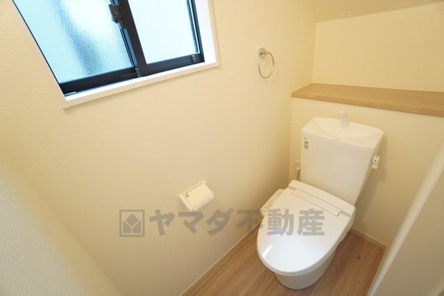 1階2階の2ヶ所にトイレがありますので、忙しい朝にも家族に気を使わず、ゆとりが生まれますね^^ 小窓付きで換気する時に便利です^^