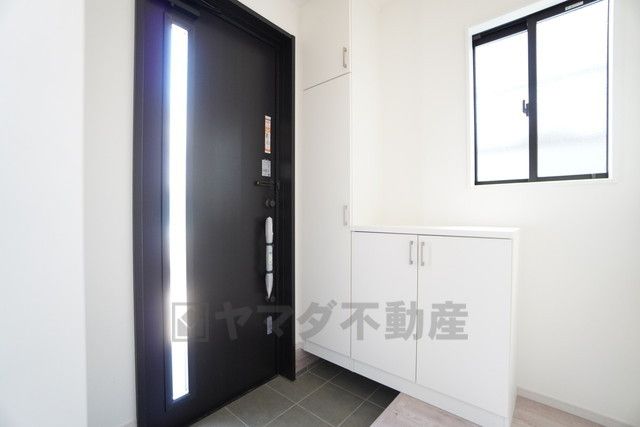 採光も考えられた明るい玄関です。たっぷり収納できるシューズボックス付きなので、家族全員の靴がきれいに整頓できます。