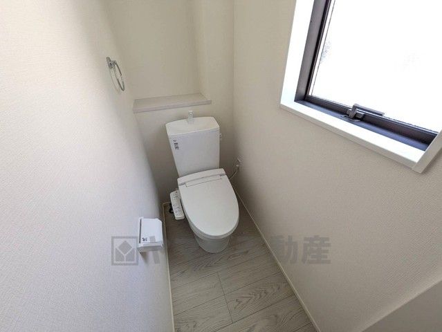 1階2階の2ヶ所にトイレがありますので、忙しい朝にも家族に気を使わず、ゆとりが生まれますね^^ 小窓付きで換気する時に便利です^^