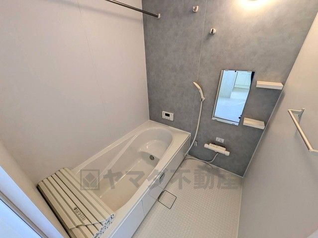 1日の疲れを癒すくつろぎのバスルーム。足を伸ばしてもゆったりと入れるサイズです。お子様と一緒にお風呂に入っても狭くないですね^^