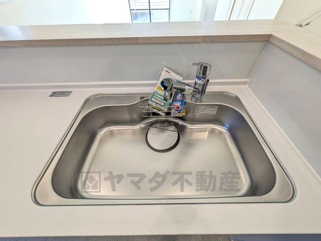 大きなお鍋も楽々洗える幅の広いシンクです^^ステンレスシンクなので簡単にお掃除できますよ。洗剤やスポンジもすっきりできる収納付き。