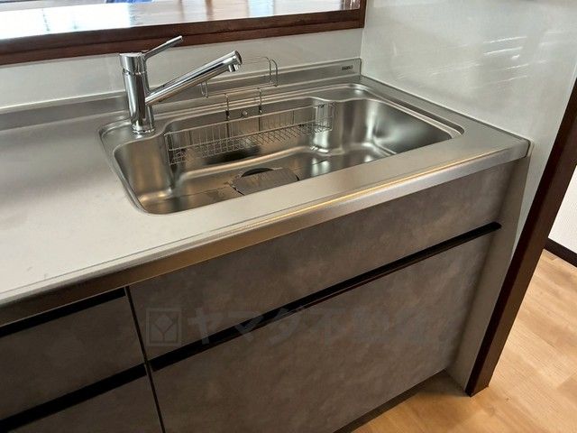 大きなお鍋も楽々洗える幅の広いシンクです^^ステンレスシンクなので簡単にお掃除できますよ。洗剤やスポンジもすっきりできる収納付き。