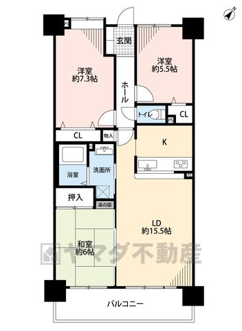 LDK15.5畳、洋7.3畳、洋5.5畳、和6畳 |