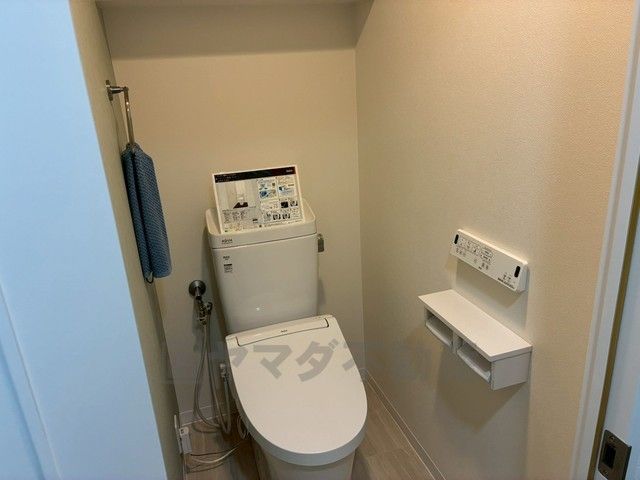 ウォシュレット、暖房便座、節電・節水機能など、使い勝手のよい高機能トイレです。 上部には収納棚が付いています^^