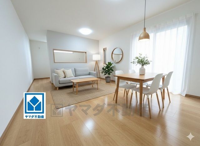 大きな掃き出し窓のあるリビングは、陽光あふれる明るい空間です。ゆったりと寛げる憩いの場となりそうです。
