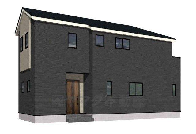 3号棟。完成予想図。シャープなラインとスタイリッシュな色調をイメージイメージした外観。4LDK^^駐車スペース2台分確保^^