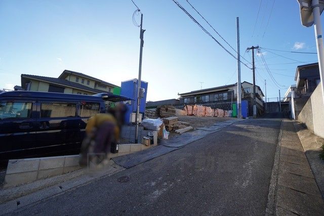 現地(2026年1月)撮影。 前面道路は北側約4m公道、東側約4.1m公道に面しています^^徒歩10分圏内にはスーパー、コンビニ、ドラッグストア、公園など。周辺環境充実^^