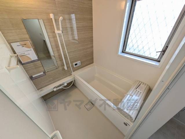 1日の疲れを癒すくつろぎのバスルーム。足を伸ばしてもゆったりと入れるサイズです。お子様と一緒にお風呂に入っても狭くないですね^^