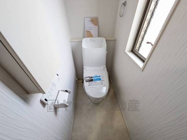 1階2階の2ヶ所にトイレがありますので、忙しい朝にも家族に気を使わず、ゆとりが生まれますね^^ 小窓付きで換気する時に便利です^^ 収納スペースも付いています^^