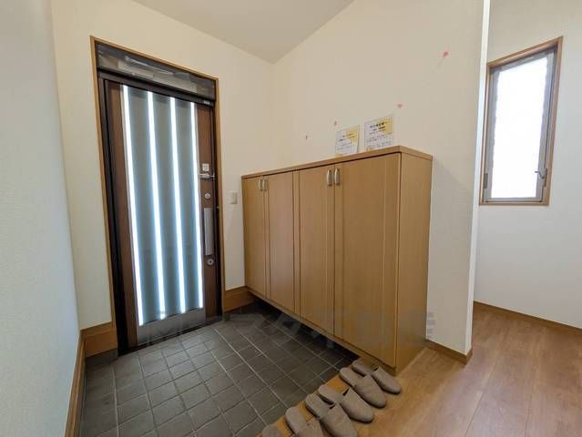 玄関扉にスリットのある明るい玄関です^^シューズボックス付きなので、家族全員の靴がきれいに整頓できます。